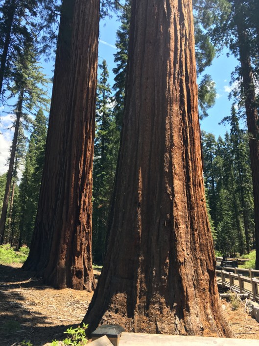 Mariposa Grove is about an hours drive from Yosemite Valley. It has undergone massive improvements since our last visit. The parking lot was moved with shuttle access into the grove. This will give the roots a chance – tourists were picnicking on top of these beautiful old growth shallow roots – the parking lot itself was destroying the trees. It’s really a great improvement with walkways to keep the foot traffic raised up above the root structures.