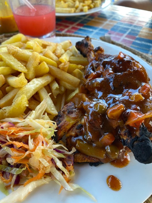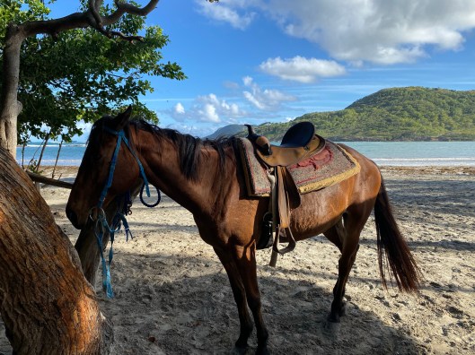 First stop was Marjories’ at a remote beach – they served us Rum Punch and BBQ Chicken. I was so excited to eat real food! We watched people ride horses in the water and had a great time catching up with my friend.