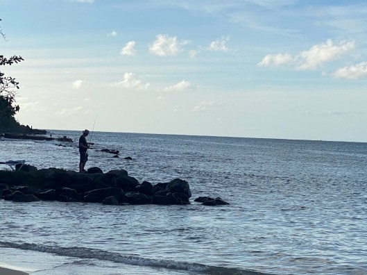 We went to see the beach where my friend’s boat had recently sunk, a very nice bay at Gross Islet with a view of Rodney Bay resorts as the sun was going down. It was a bit too cold in the shade… all a result of our late arrival.