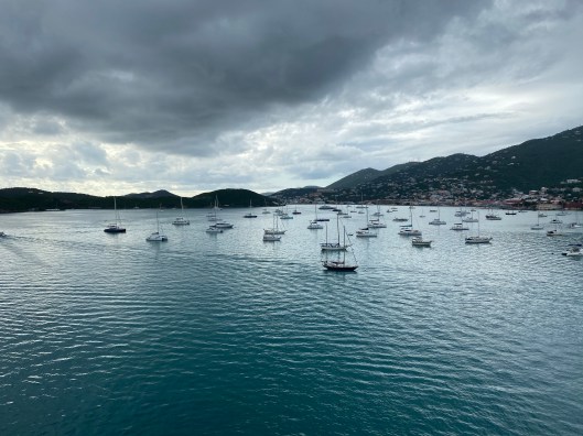 The original plan was to take the cruise line excursion to Jost Van Dyke, Home of the Soggy Dollar Bar. Our friends were all excited about this highlight of our vacation. We received a notice of cancellation on our first day of the cruise – due to the tour provider – we heard it was wind related. So, no problem… I booked a snorkel tour to Virgin Gorda that included a swim into Virgin Gorda. I waited around all morning for the excursion -to find out at 12:30 that there is a red flag warning and there’s no swimming allowed at Virgin Gorda. Ok, darn… well, I could go to a beach, after waiting a considerable time for our driver we realized we wouldn’t get much time at the beach – so it turned into a port people watching drinking day.