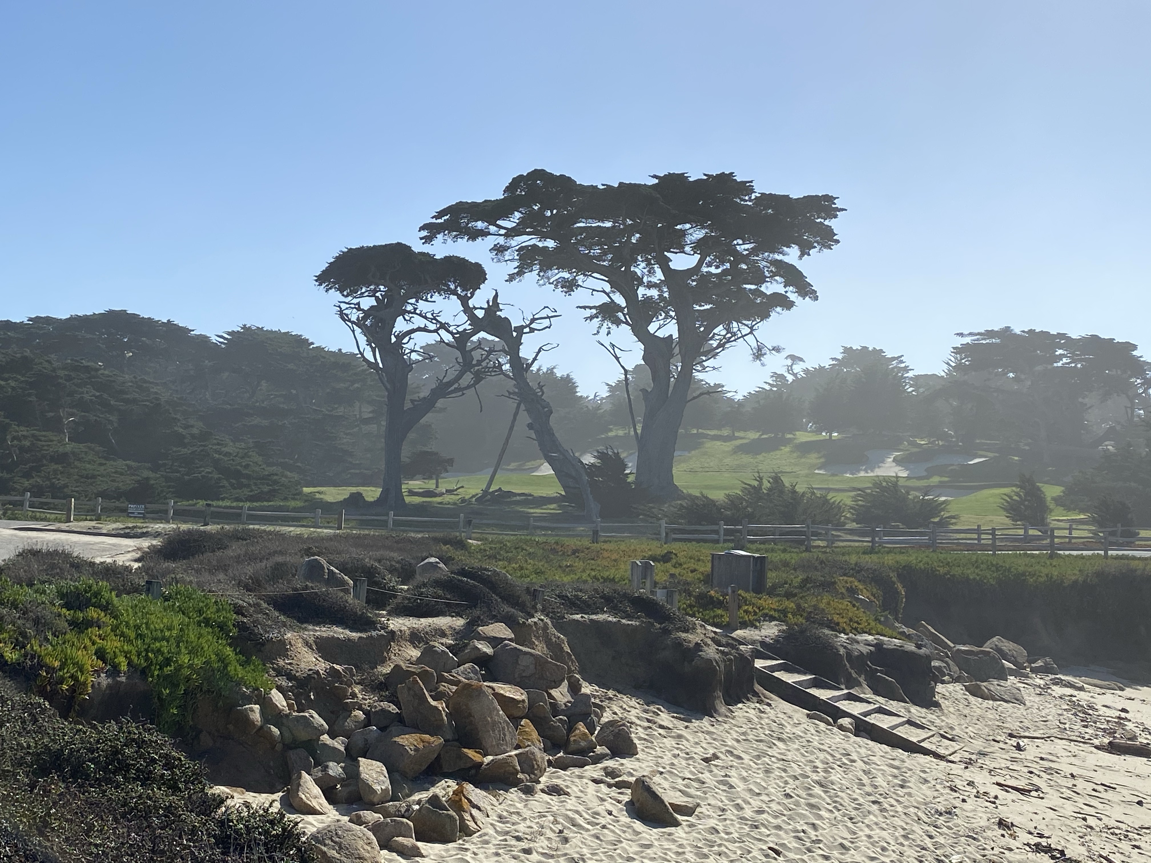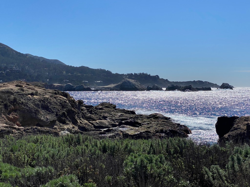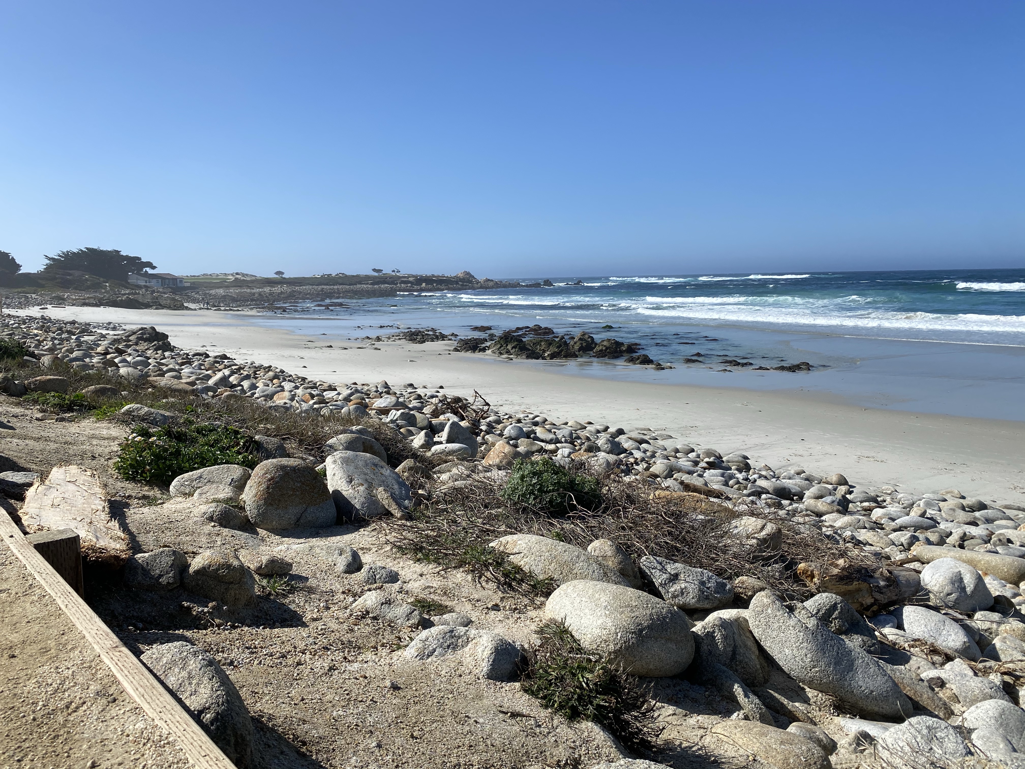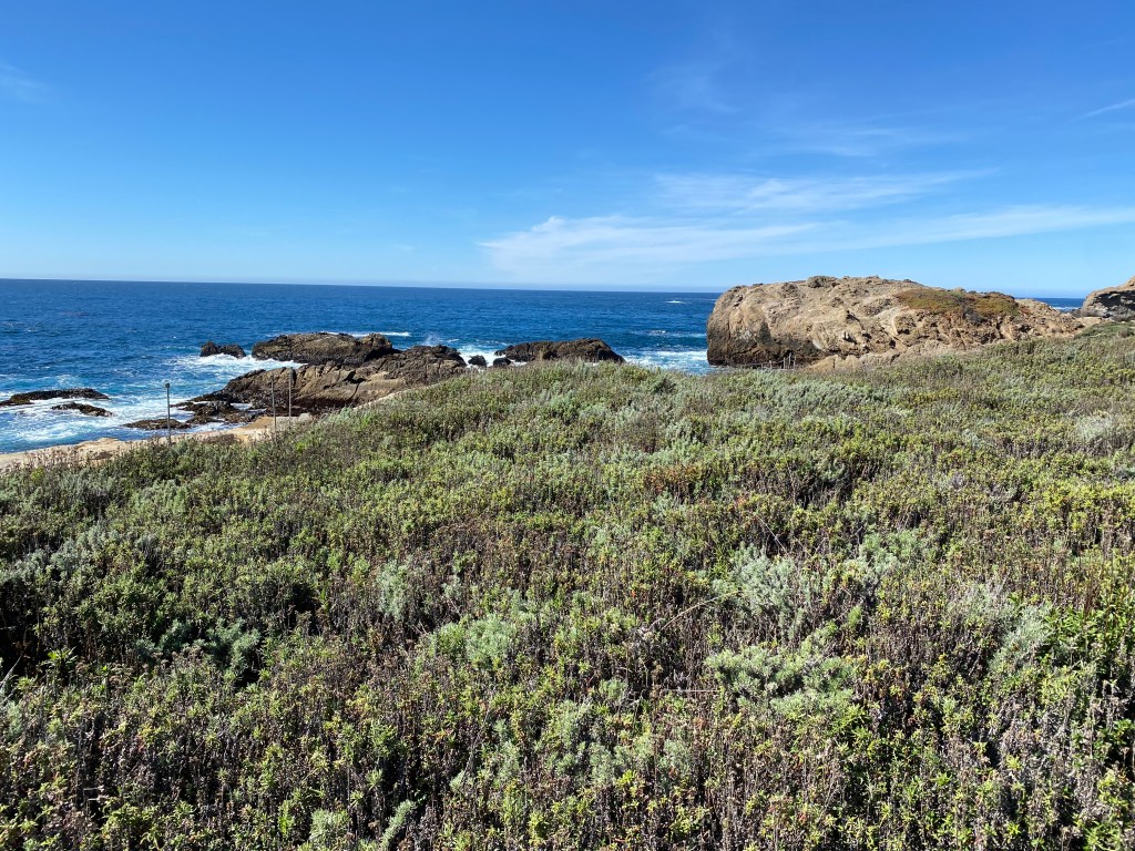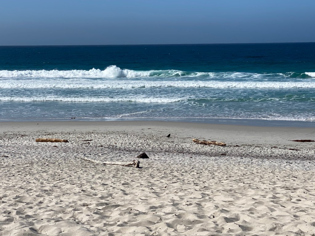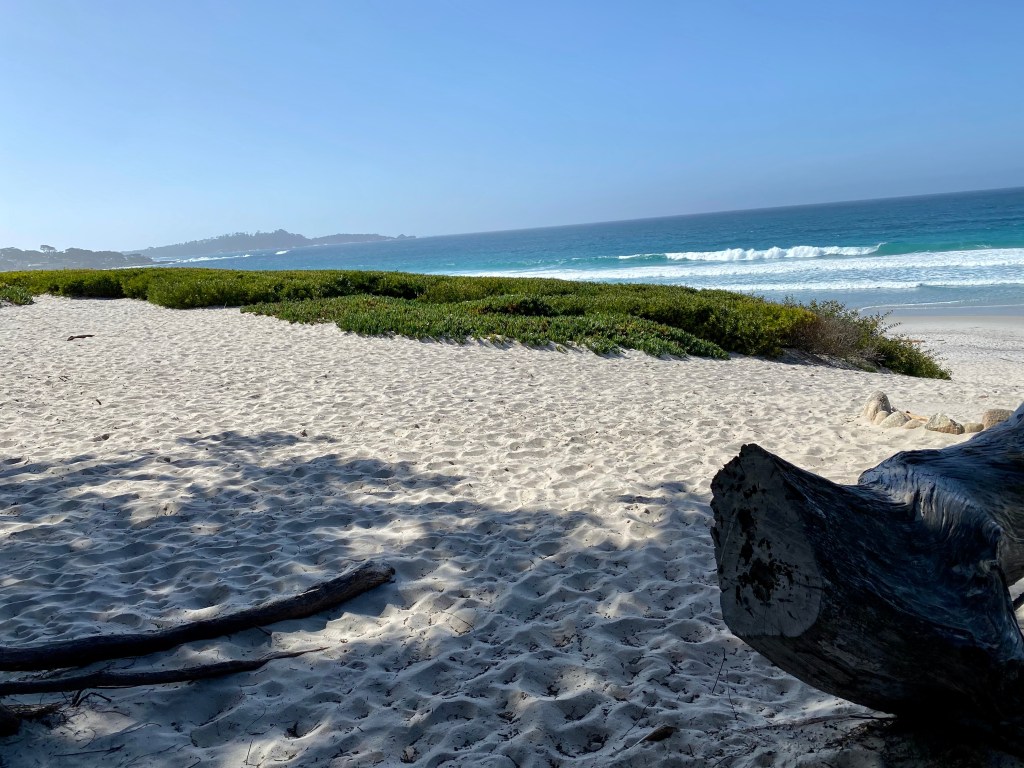 Carmel Beach is a long and flat with beautiful white sand. It’s got plenty of parking at 10:30-11am on a Friday, but then starts to get crowded. Pretty much everyone has a dog, and most of them are beautiful golden retrievers https://ci.carmel.ca.us/beach-parks