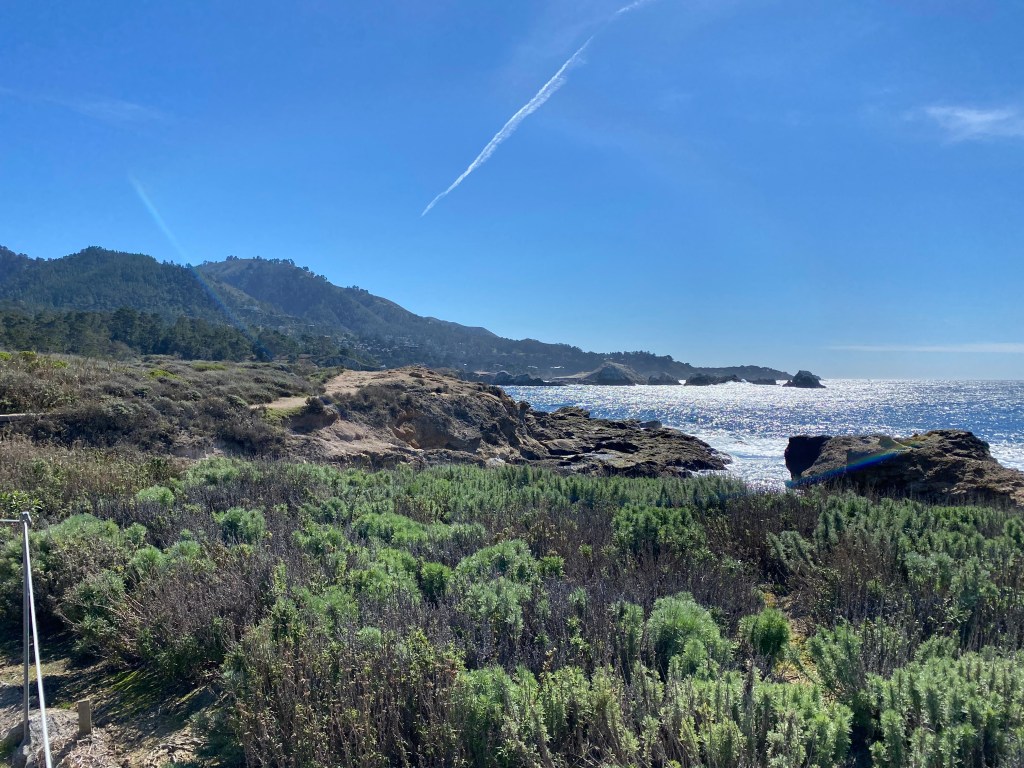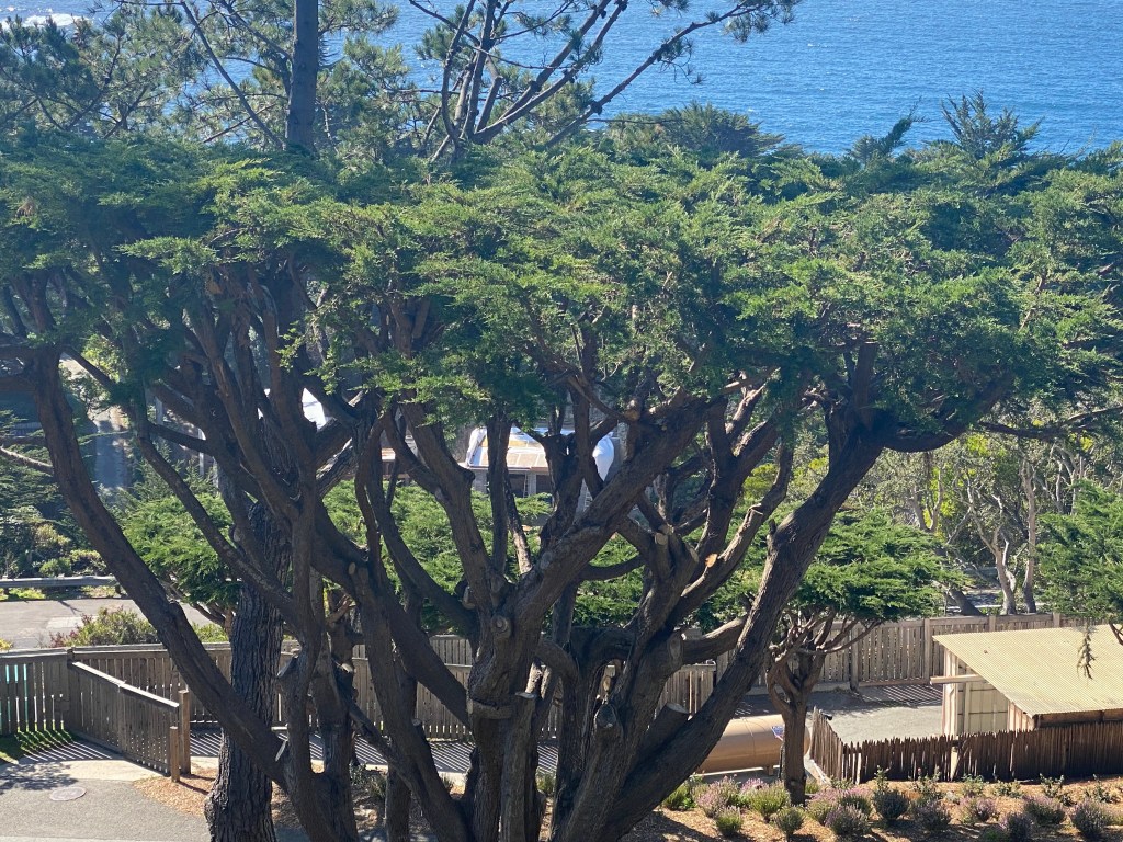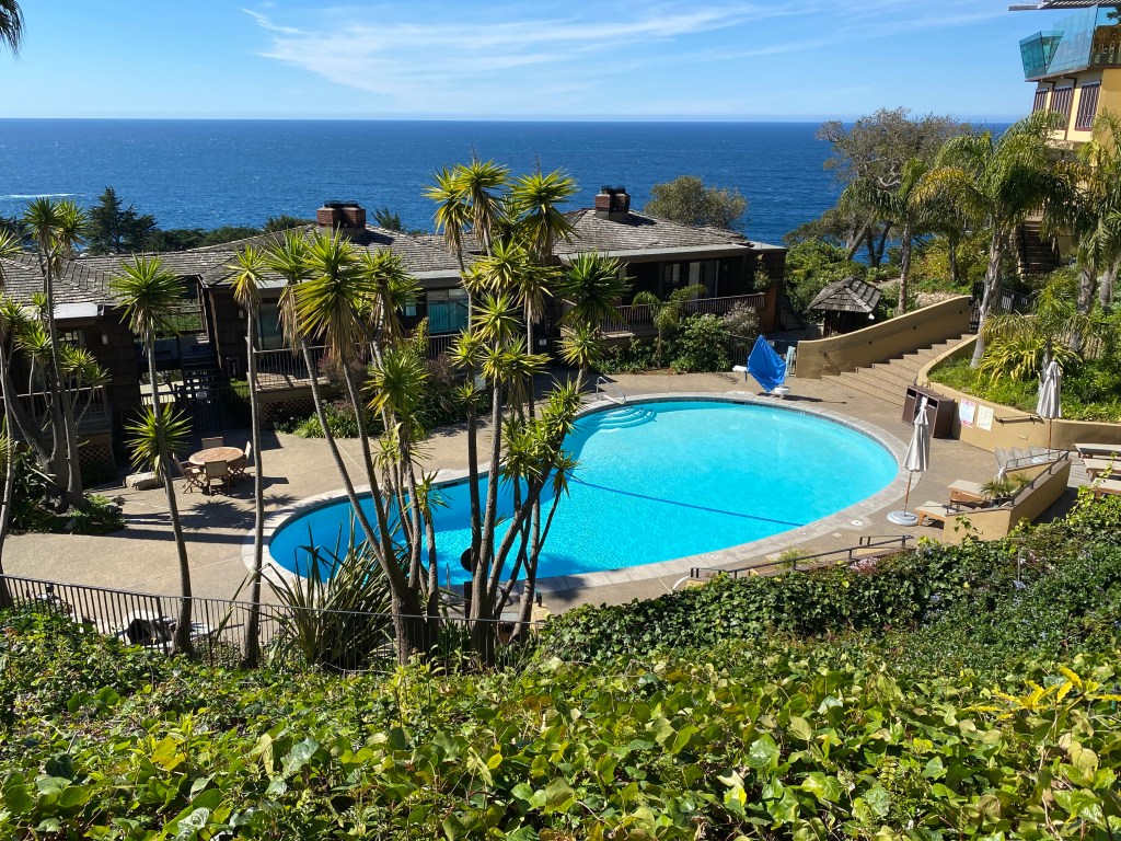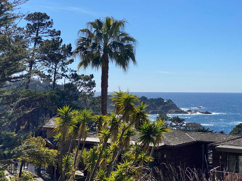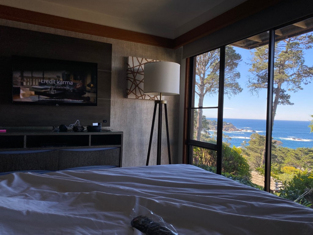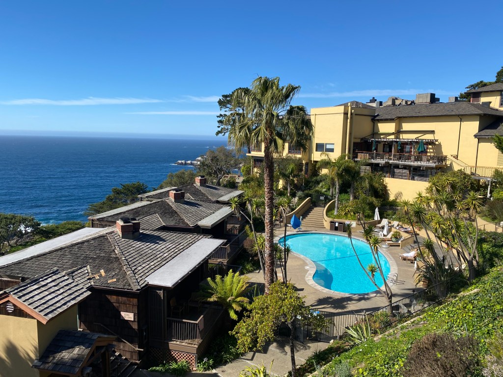 My mother and stepfather honeymooned at the Hyatt Highlands in Carmel by the Sea in 1976. I found a brochure she had saved and was inspired to spend a few days relaxing and taking in the view during the Covid-19 Pandemic. Restaurants are open for take out and delivery, although there is only low quality pizza for delivery at the Hyatt Regency Highlands – it is removed from the town of Carmel, just south of Pt. Lobos State Reserve, just on the edge of Big Sur.