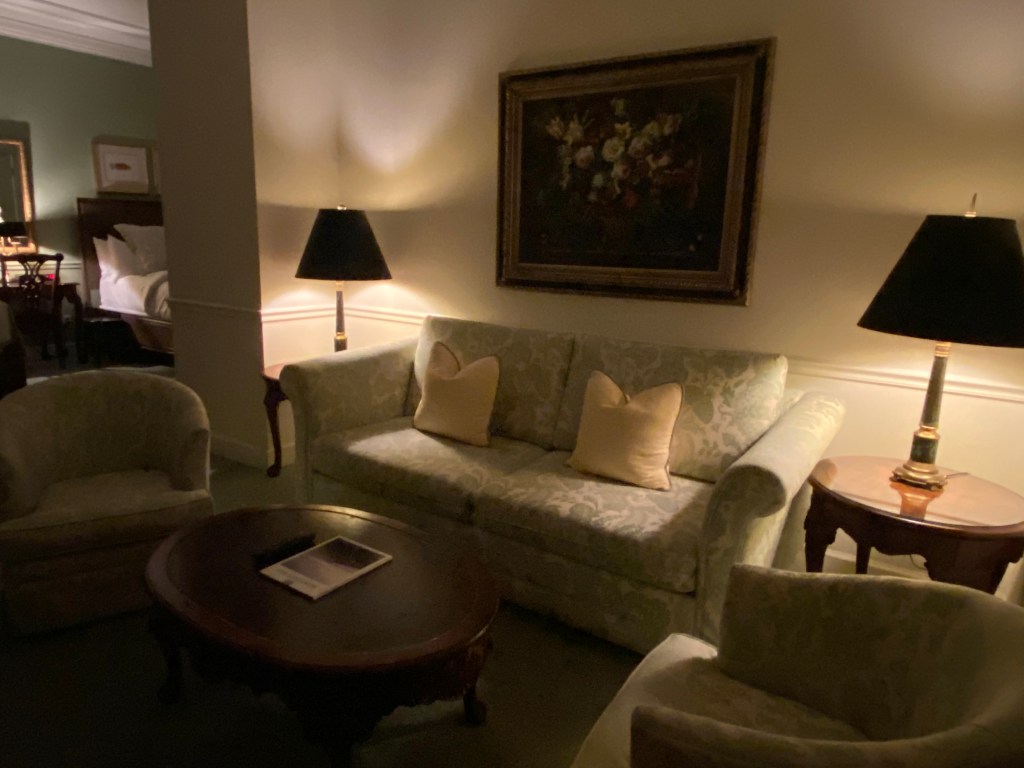 The goal of Friday was to enjoy Carmel Valley tasting rooms and be able to walk to dinner. We had checked out of the Hyatt earlier in the day and moved in town to the Pine Inn. It was close to everything, and also close to the beach! The Pine Inn had a perfect room for me and my sister to share. There were 2 double beds up on high pedestals, a sitting area with a full size couch and two club chairs and an additional table where you could enjoy breakfast if you had gotten it to-go. There was a huge jetted tub in the oversized marble bathroom. Spa robes were provided too. Everything was extremely comfortable and convenient. https://www.pineinn.com/