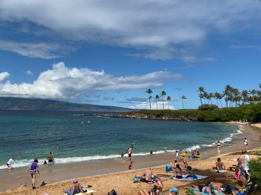 Snorkeling in Kapalua Bay is so easy… no waves and lots of reef. It was a bit cloudy and although checking on both sides of the cove, there were zero Sea turtle sightings. I was surprised and went to the Sheraton at Black rock to snorkel with turtles but didn’t find any there either. Thinking perhaps there was a turtle convention somewhere else?