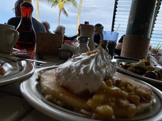 Day 2: time for breakfast and our go-to restaurant is closed for remodeling – ended up at the Honolua Store where we were treated to music from 2 nearby church services.