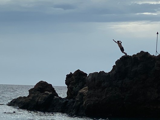 The beach was rather calm at around 4 pm. There were quite a few people snorkeling. This is a great place to find sea turtles. Some brave teenagers were jumping, diving and even doing back flips off the rocks while I enjoyed a Mai Tai overlooking Kaanapali Beach