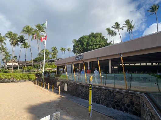 The Sea House Restaurant at Napili Kai has a great patio but we were greeted by rain so moved indoors